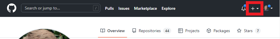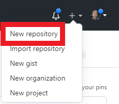 From the GitHub homepage, left click on the plus sign in the upper right corner of the page, as highlighted below.