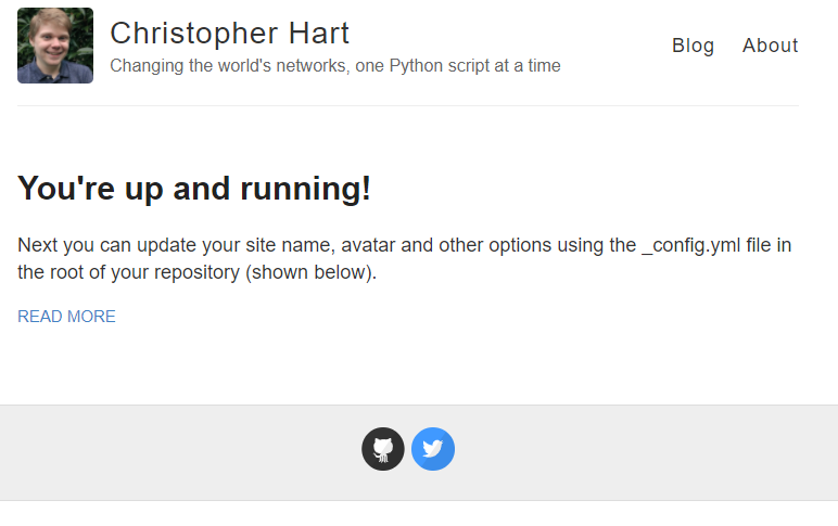 Next you can update your site name, avatar and other options using the _config.yml file in the root of your repository (shown below).