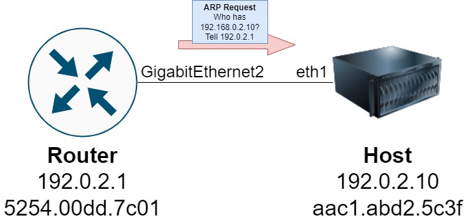 To summarize, the router knows the host’s IP address, but does not know the host’s MAC address. The router needs to resolve the host’s MAC address using the host’s IP address.