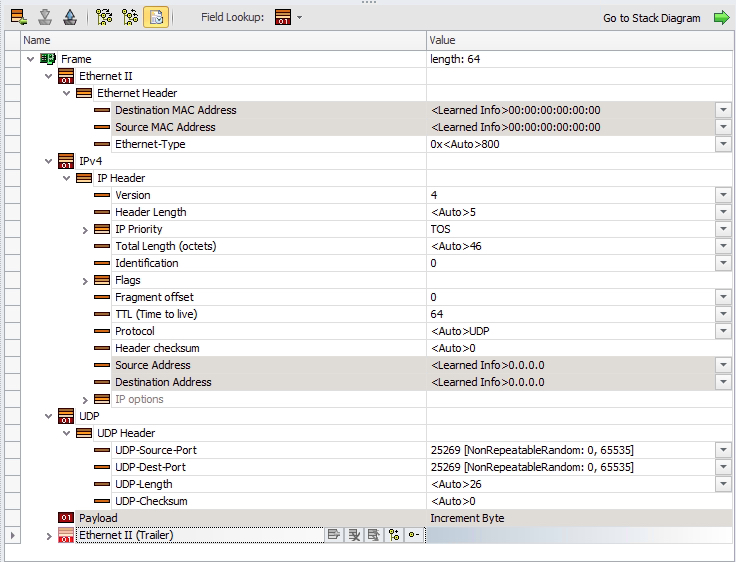Since Switch-1’s hashing algorithm can use Layer 3 and Layer 4 headers, let’s add a UDP header with randomized ports to add some entropy to our traffic flow.